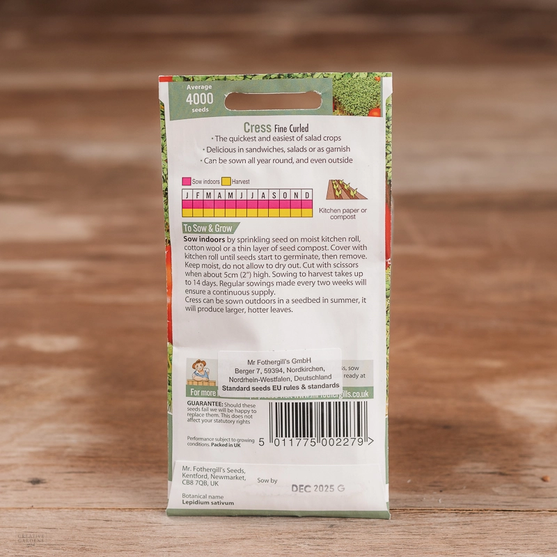 Are you looking for the product "Cress Fine Curled"? We offer Fothergills Seeds products in our garden centers in Donaghadee, Bushmills, Galgorm and Logwood. You can also order the product "Cress Fine Curled" online for £ 2.99 or check the products in Seeds & Bulbs. We look forward to seeing you soon!