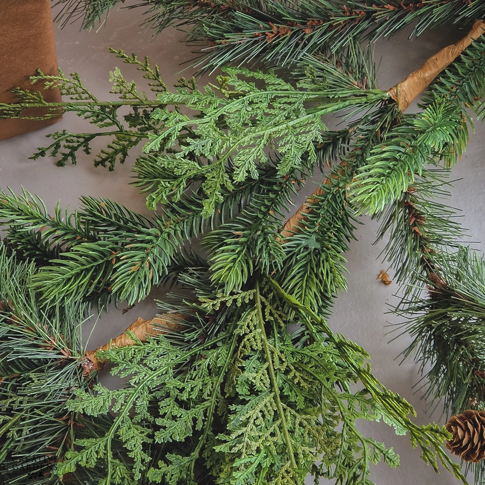 180cm Cypress Garland with realistic conifer foliage and pinecones.