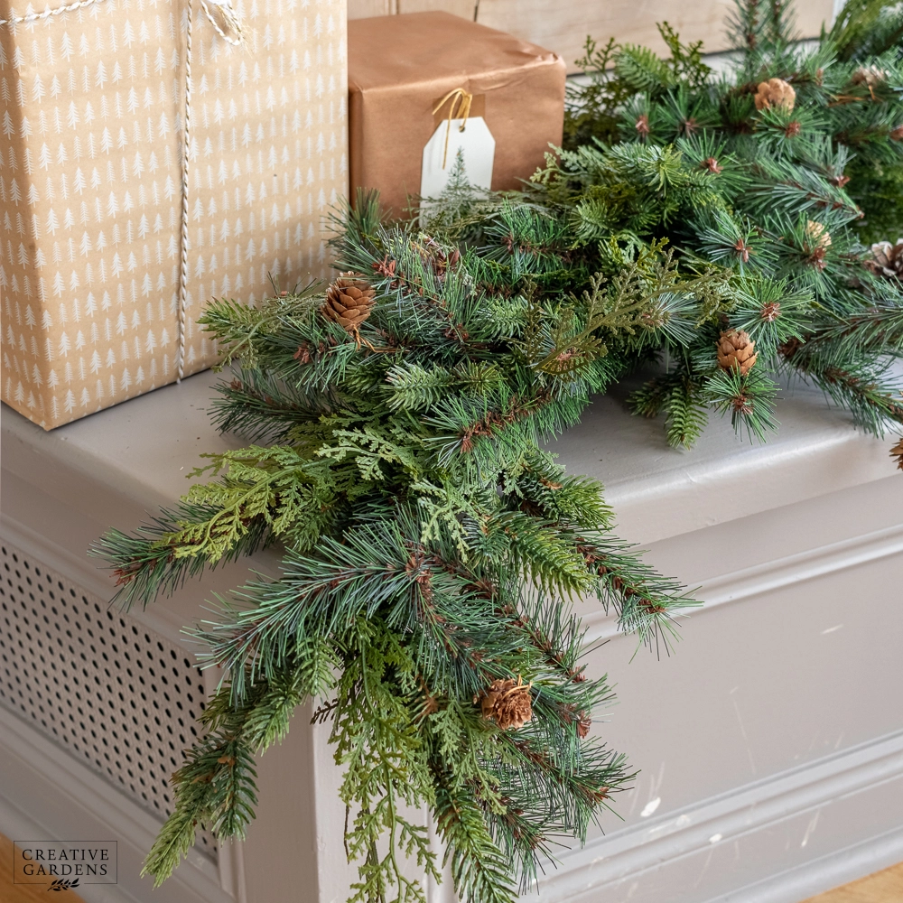165cm Cypress Garland is the perfect length for decorating your mantel - complete with realistic conifer foliage and pinecones.