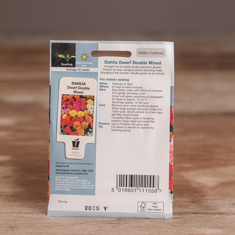 Are you looking for the product "Dahlia Dwarf Double Mix"? We offer Johnsons Seeds products in our garden centers in Donaghadee, Bushmills, Galgorm and Logwood. You can also order the product "Dahlia Dwarf Double Mix" online for £ 3.19 or check the products in Seeds & Bulbs. We look forward to seeing you soon!