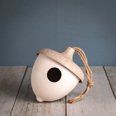We would love to know what you think! Write a review about the product “Earthy Oatmeal Hanging Acorn Birdhouse - Chaff & Natural Bamboo”