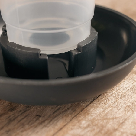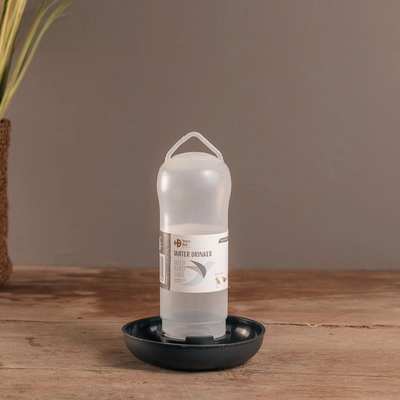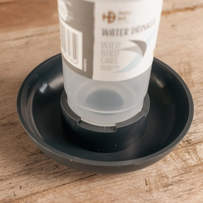 A sleek, contemporary, robust water drinker in grey featuring an easy turn base. The design incorporates a bird friendly tray to enable birds to comfortably drink water which is essential to their well-being. Simply fill the reservoir with water and attach the tray whilst holding the reservoir upside down. Take the water drinker to your preferred location and hang. The reservoir uses gravity to refill the tray until empty.