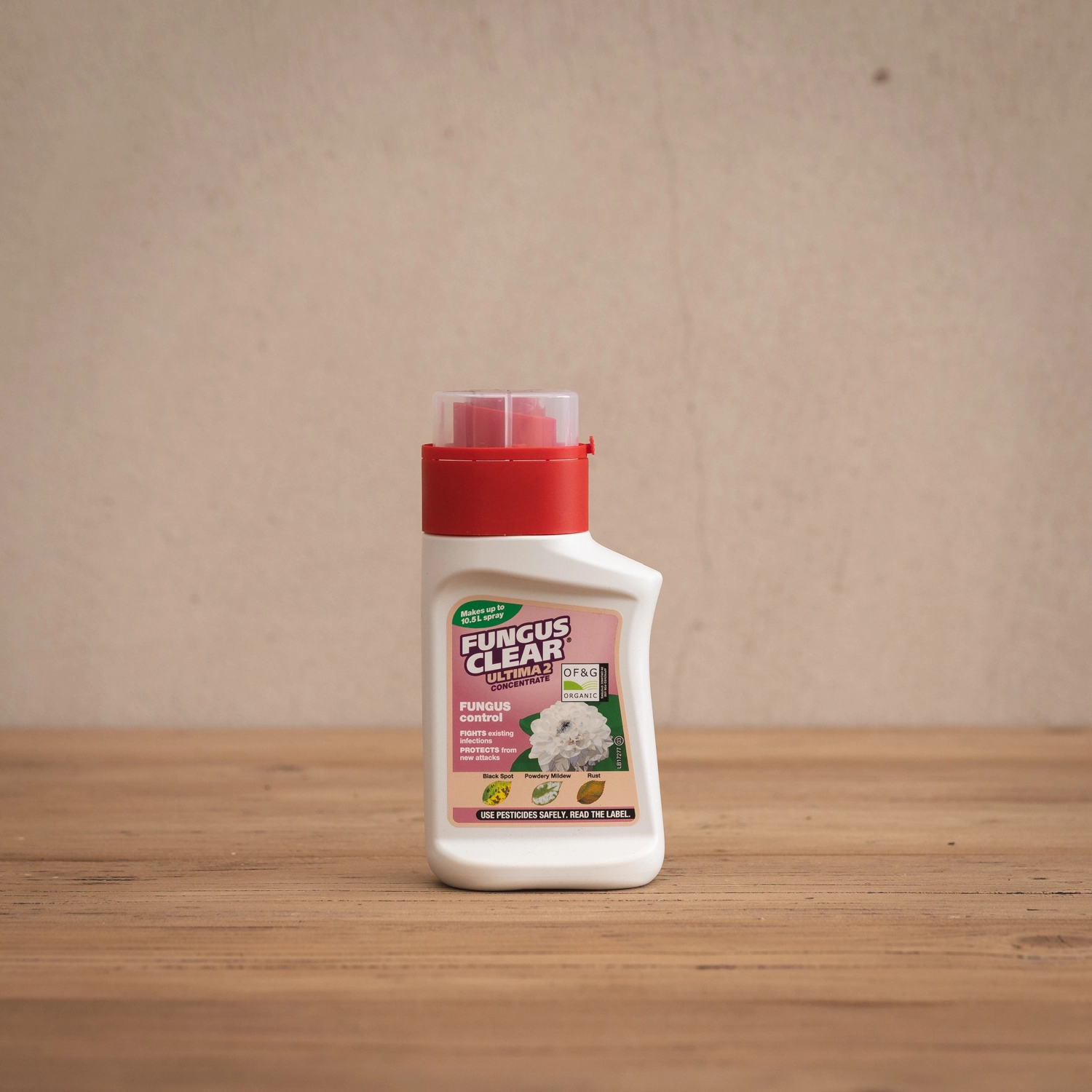 FungusClear® Ultima 2 is OF&G certified formula that protects against diseases such as powdery mildew and black spot. This product is ideal for roses, shrubs and other ornamental plants. We recommend using every 7-14 days from onset of infestation and repeat regularly until disease has gone. The formula combines a physical barrier and strengthens the plants natural defences. The bottle is made from 100% recycled plastic.