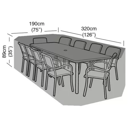 High Quality, super Tough furniture cover with full UV and weather protection with waterproof welded seams. All round draw string with chord locks allows you to secure the cover to your furniture. This cover comes with a massive 7 year guarantee.