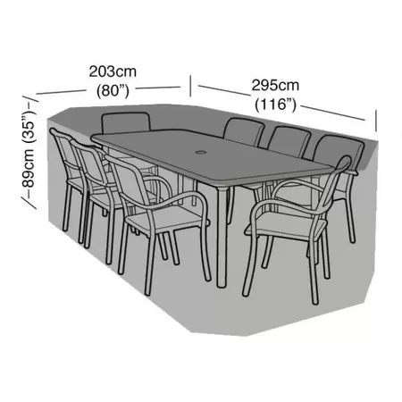 High Quality, super Tough furniture cover with full UV and weather protection with waterproof welded seams. All round draw string with chord locks allows you to secure the cover to your furniture. This cover comes with a massive 7 year guarantee.