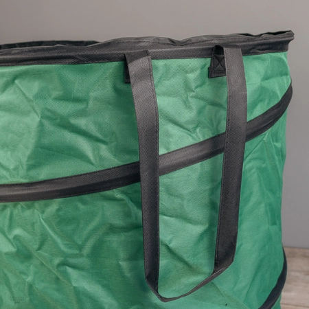 The ideal bag for rubbish and recycling around the home and garden. Ideal to use for collecting up weeds, hedge cuttings, leaves, garden waste, and grass cuttings. Spring steel band ensures the bag pops up and opens for easy filling. Velcro strap-on handles ensure the bag stays closed for easy storage. Made from high-quality PE-backed polyester material with strong webbing handles. Full UV protection against the sun for longer life. Wipe clean surfaces,