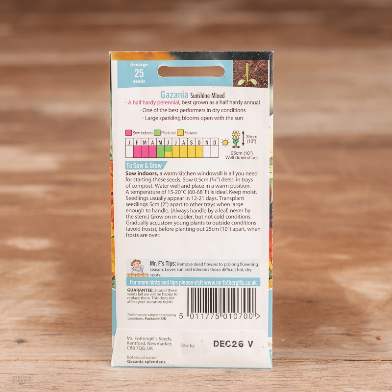 Are you looking for the product "Gazania Sunshine Mix"? We offer Fothergills Seeds products in our garden centers in Donaghadee, Bushmills, Galgorm and Logwood. You can also order the product "Gazania Sunshine Mix" online for £ 3.19 or check the products in Seeds & Bulbs. We look forward to seeing you soon!