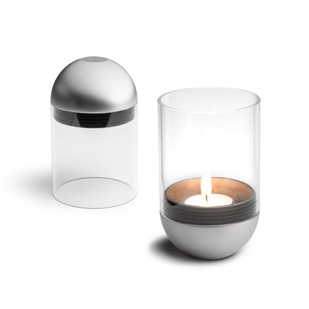 The fascinating interplay between fire and gravity really gives GRAVITY CANDLE the wow-factor. The secret: the candle is mounted in a gimbal so gravity keeps it upright at all times. It’s easy to light the wick in the glass tube with a match without having to worry about your fingers. And to put it out? Simply turn GRAVITY CANDLE upside down and the flame will extinguish. Safe and clean. No need to blow it out, and no smoke or wax stains on the glass! The upside-down position also protects the inside of the lantern from dirt, rain and dust.