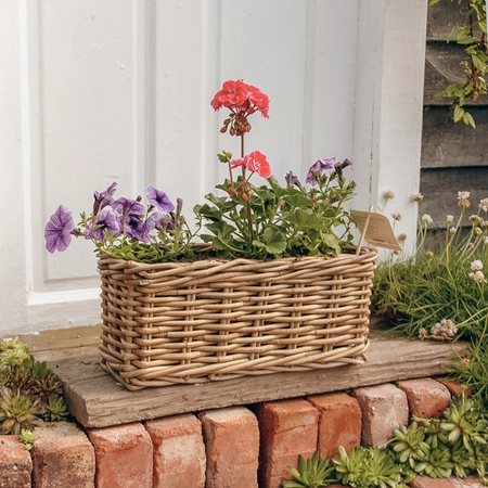 Small Grey Willow Window Box Planter with a selection of Bedding Plants & Foliage.