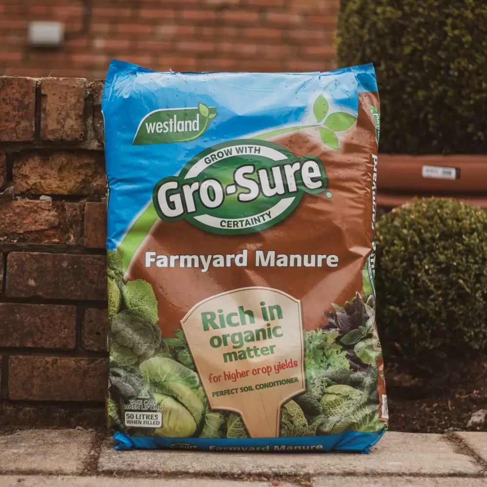 Gro-Sure Farmyard Manure is a rich organic compost ideal for use all around the garden. Gro-Sure Farmyard Manure is perfect for mulching, planting and soil conditioning. Perfect for flowers, fruit & vegetables, as well as roses, trees and shrubs.
