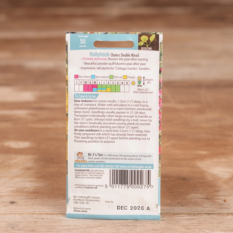Are you looking for the product "Hollyhock Chaters Double Mix"? We offer Fothergills Seeds products in our garden centers in Donaghadee, Bushmills, Galgorm and Logwood. You can also order the product "Hollyhock Chaters Double Mix" online for £ 2.99 or check the products in Seeds & Bulbs. We look forward to seeing you soon!