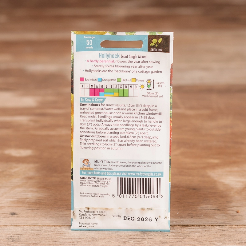 Are you looking for the product "Hollyhock Giant Single Mix"? We offer Fothergills Seeds products in our garden centers in Donaghadee, Bushmills, Galgorm and Logwood. You can also order the product "Hollyhock Giant Single Mix" online for £ 3.19 or check the products in Seeds & Bulbs. We look forward to seeing you soon!