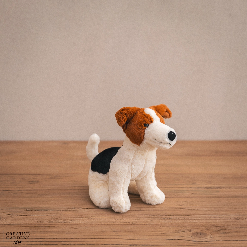 Albert Jack Russell is a happy pup in soft cream fur with black and brown patches. With perky ears and a waggly tail, Albert loves to run around the garden. Just watch out for him digging up the carnations!