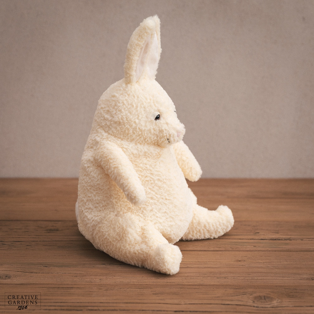 Amore Bunny is one joyful pal, with a weighted base and textured vanilla fur. With chunky haunches, wee carrot arms, perky ears and a snuggly tum, this sleepy bunny is ready to close those suedette eyelids. Rumpled and soft, with a creamy bobtail, Amore Bunny is a calming friend.