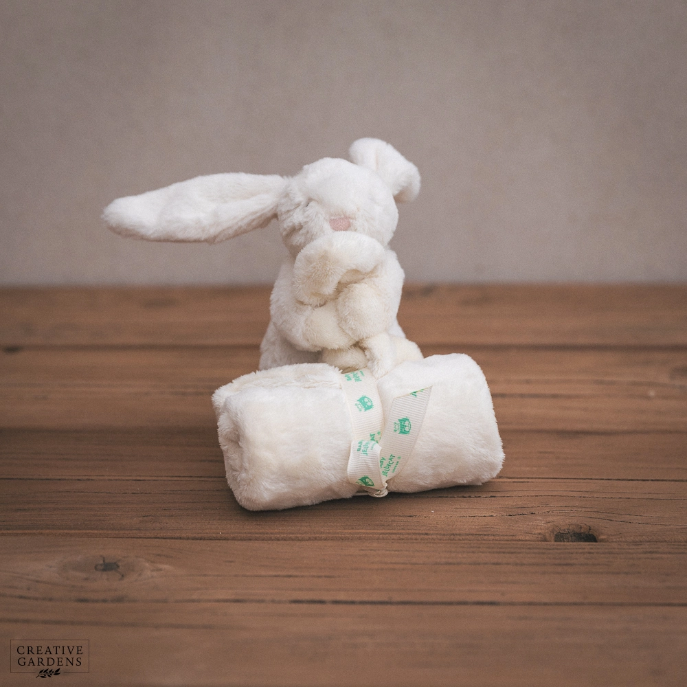 Bashful Cream Bunny Soother is our most loved Bashful Bunny in a soft cream fur, with long lopped ears, a pink suedette nose and stitched eye detail holding a square shaped soother, un-stuffed and irresistibly soft to touch.