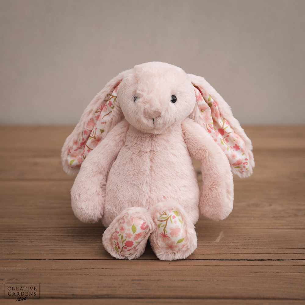 Blossom Blush Bunny has been wandering among the Sakura, and collected some of the blooms. In iconic blush-pink Bashful fur with a cream bobtail, Blossom Blush Bunny has soft cotton floral ears and feet, printed with an original Jellycat design of pink flowers and green leaves. The floral gift that keeps on giving.