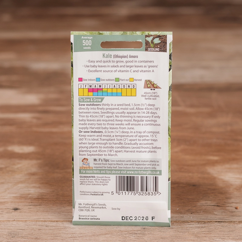Are you looking for the product "Kale (Ethiopian) Amara"? We offer Fothergills Seeds products in our garden centers in Donaghadee, Bushmills, Galgorm and Logwood. You can also order the product "Kale (Ethiopian) Amara" online for £ 2.49 or check the products in Seeds & Bulbs. We look forward to seeing you soon!