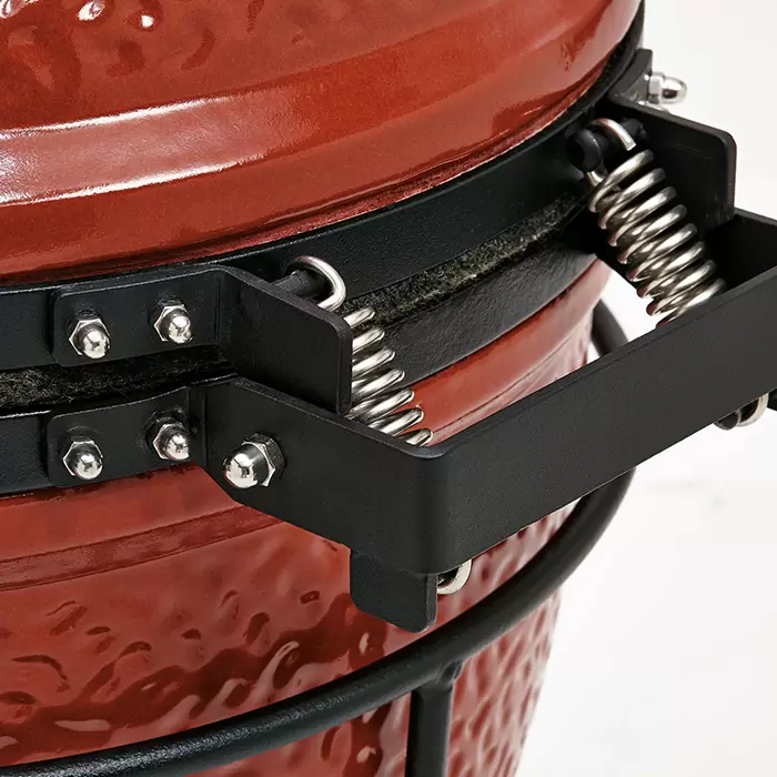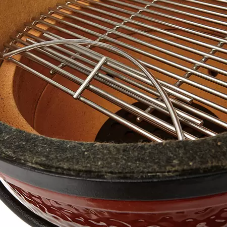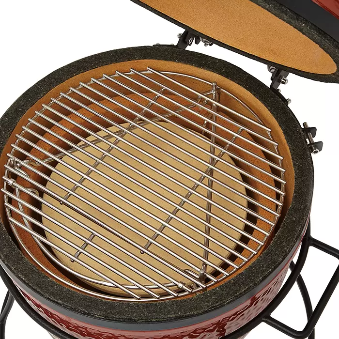 Our most portable ceramic charcoal grill, Kamado Joe Jr., offers 13.5 inches of cooking space. Weighing only 68 pounds, this kamado ceramic grill is the perfect sidekick for any one on the go, a quick weeknight meal for two, or any new ceramic griller.