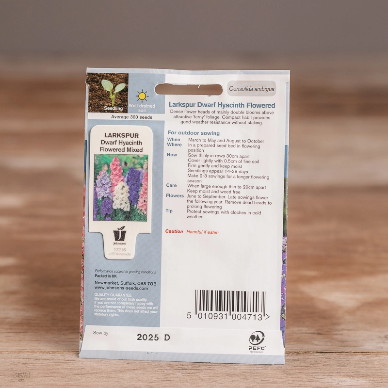 Are you looking for the product "Larkspur Dwarf Hyacinth Flowered Mix"? We offer Johnsons Seeds products in our garden centers in Donaghadee, Bushmills, Galgorm and Logwood. You can also order the product "Larkspur Dwarf Hyacinth Flowered Mix" online for £ 3.19 or check the products in Seeds & Bulbs. We look forward to seeing you soon!