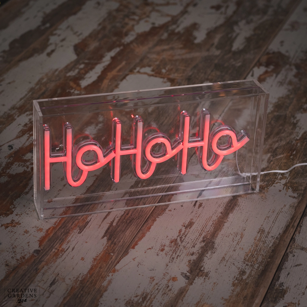 Clear Plastic Sign with Neon Red Ho Ho Ho. USB Plug not included