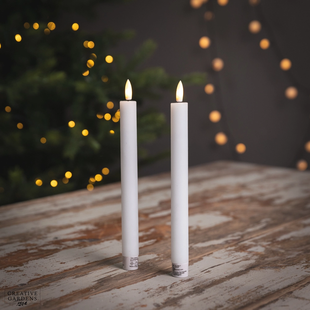 Two Pack of White Wax Dinner Candles with LED Flickering Flame