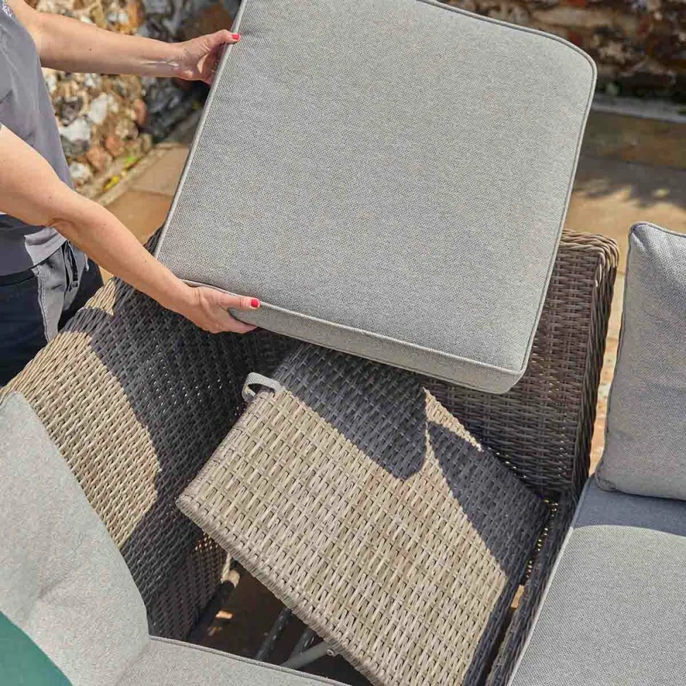 The St Tropez Sand Rectangular Dining Modular is crafted with meticulous attention to detail. Featuring: Stain Resistant Fabric, Season-proof cushions, Environmentally Friendly EcoCore, 3 year Warranty, Handwoven Poly-Rattan with authentic wicker effect, Twisted Rod Weave Trim, UV resistance, Powder Coated Lightweight Frame, Wood Effect Strengthened Ceramic Coated Safety Glass Top.. This product is made from high-quality materials such as Poly-Rattan, Aluminium, EcoCore Poly Fibre, Spun Polyester Fabric, Ceramic Coated Glass,. Experience the perfect blend of functionality, style with the St Tropez Sand Rectangular Dining Modular.