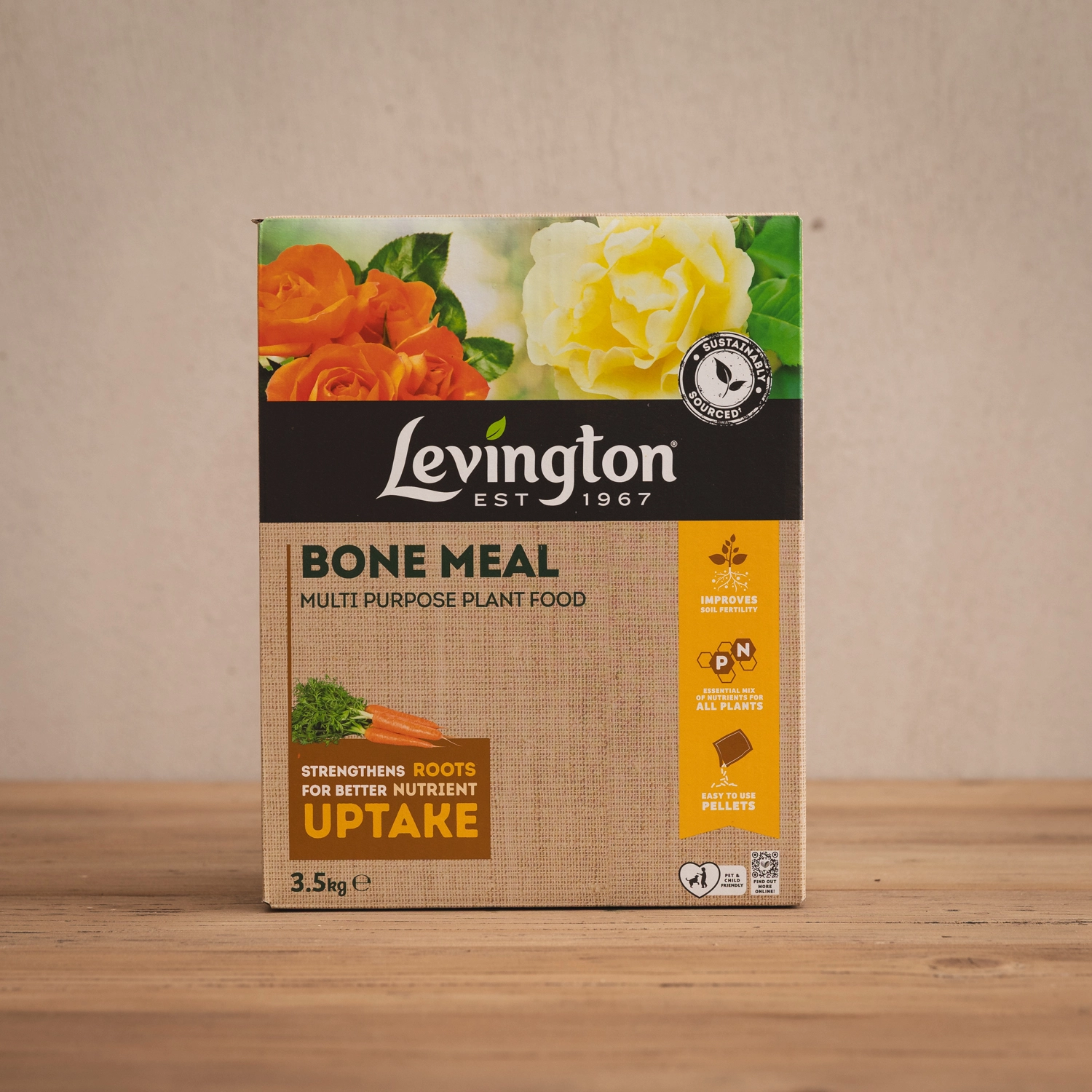 Levington® Bone Meal Multi Purpose Plant Food is a soil supplement that strengthens roots for better nutrient uptake.