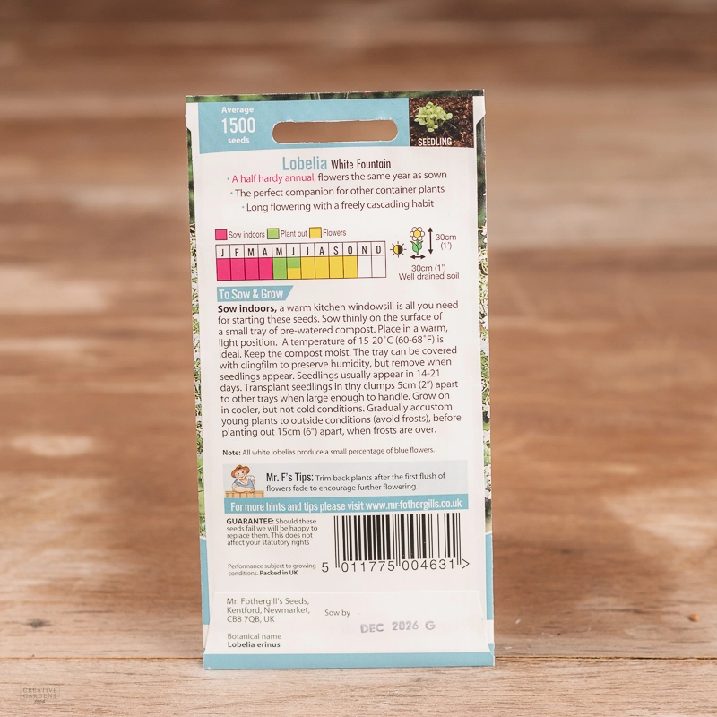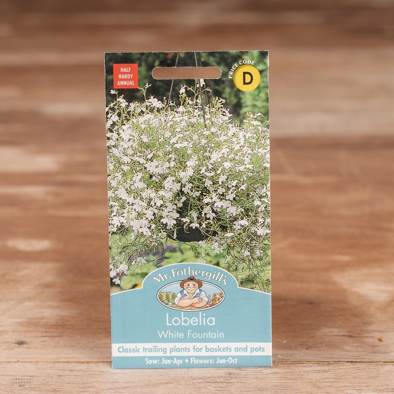 Are you looking for the product "Lobelia (Trailing) White Fountain"? We offer Fothergills Seeds products in our garden centers in Donaghadee, Bushmills, Galgorm and Logwood. You can also order the product "Lobelia (Trailing) White Fountain" online for £ 3.19 or check the products in Seeds & Bulbs. We look forward to seeing you soon!