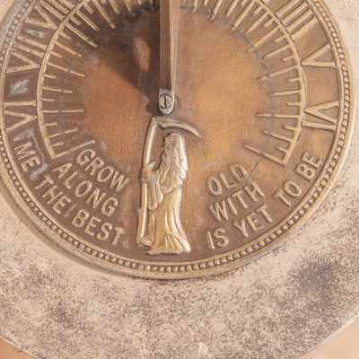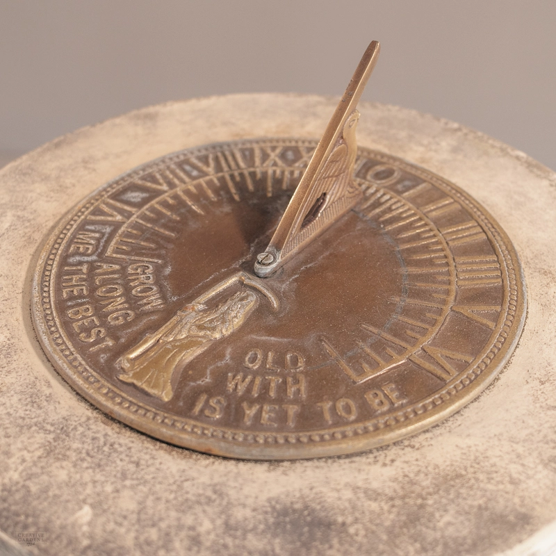 Concrete Sundial Plinth wit Brass Sundial which includes the inscription "Grow old along with me, the best is yet to come".