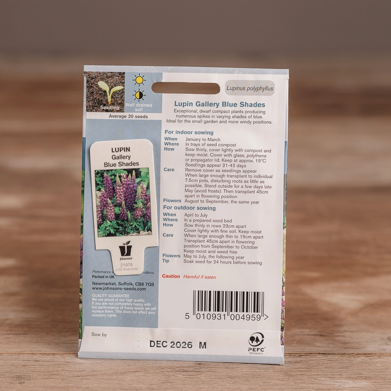 Are you looking for the product "Lupin Gallery Blue Shades"? We offer Johnsons Seeds products in our garden centers in Donaghadee, Bushmills, Galgorm and Logwood. You can also order the product "Lupin Gallery Blue Shades" online for £ 3.49 or check the products in Seeds & Bulbs. We look forward to seeing you soon!