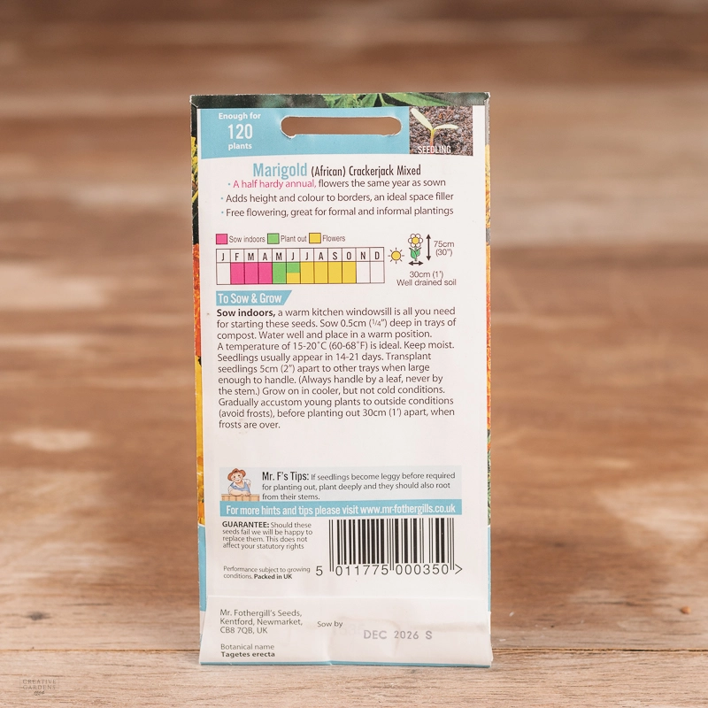 Are you looking for the product "Marigold (African) Crackerjack Mix"? We offer Fothergills Seeds products in our garden centers in Donaghadee, Bushmills, Galgorm and Logwood. You can also order the product "Marigold (African) Crackerjack Mix" online for £ 2.99 or check the products in Seeds & Bulbs. We look forward to seeing you soon!