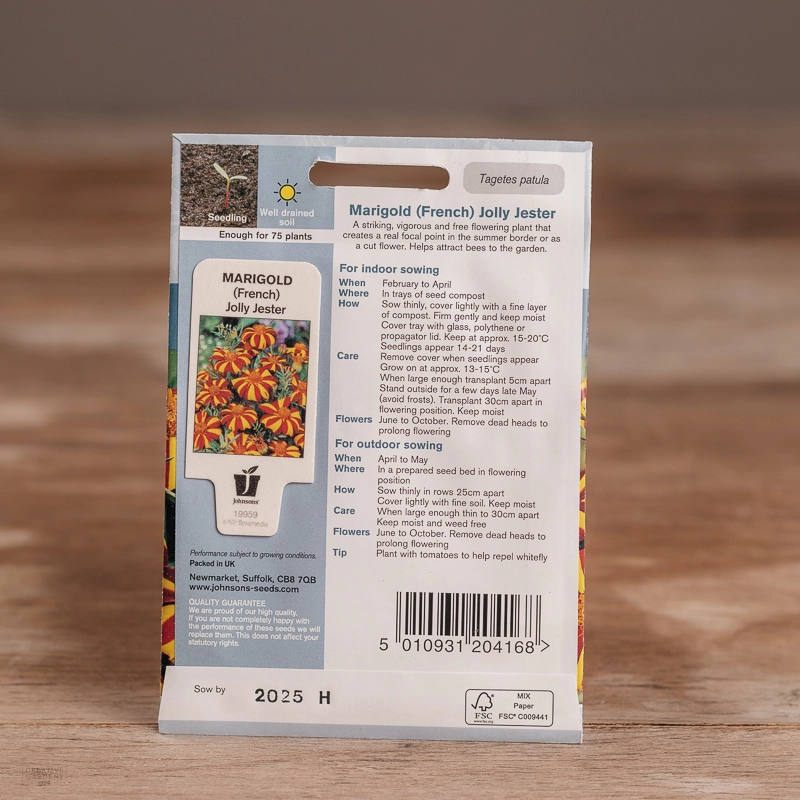 Are you looking for the product "Marigold (French) Jolly Jester"? We offer Johnsons Seeds products in our garden centers in Donaghadee, Bushmills, Galgorm and Logwood. You can also order the product "Marigold (French) Jolly Jester" online for £ 3.19 or check the products in Seeds & Bulbs. We look forward to seeing you soon!