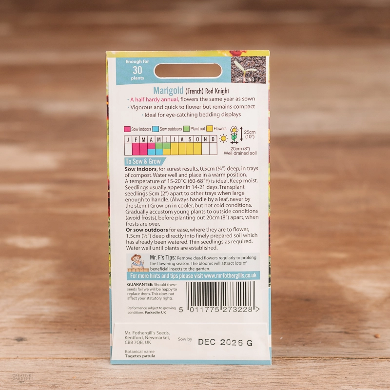 Are you looking for the product "Marigold (French) Red Knight"? We offer Fothergills Seeds products in our garden centers in Donaghadee, Bushmills, Galgorm and Logwood. You can also order the product "Marigold (French) Red Knight" online for £ 3.19 or check the products in Seeds & Bulbs. We look forward to seeing you soon!