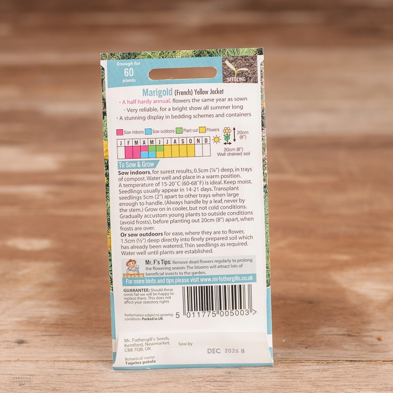 Are you looking for the product "Marigold (French) Yellow Jacket"? We offer Fothergills Seeds products in our garden centers in Donaghadee, Bushmills, Galgorm and Logwood. You can also order the product "Marigold (French) Yellow Jacket" online for £ 3.19 or check the products in Seeds & Bulbs. We look forward to seeing you soon!