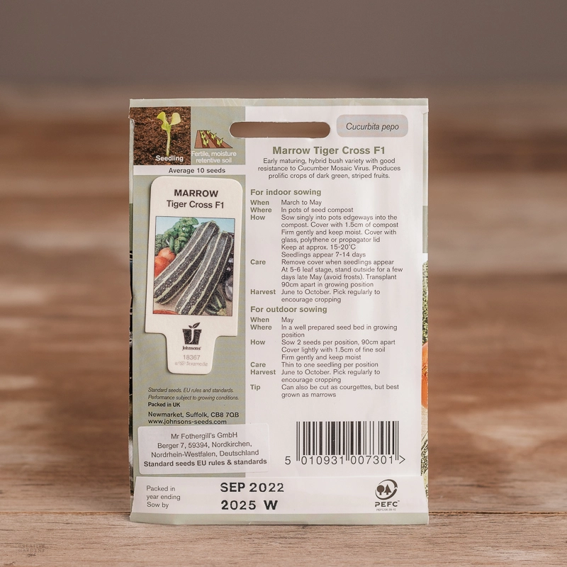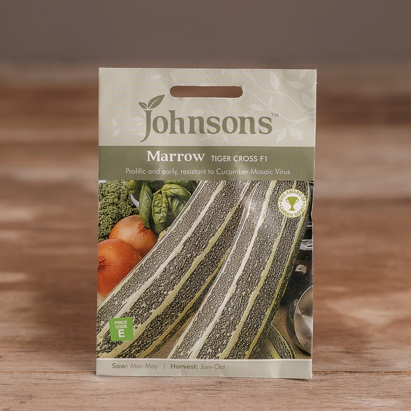 Are you looking for the product "Marrow Tiger Cross F1"? We offer Johnsons Seeds products in our garden centers in Donaghadee, Bushmills, Galgorm and Logwood. You can also order the product "Marrow Tiger Cross F1" online for £ 3.49 or check the products in Seeds & Bulbs. We look forward to seeing you soon!