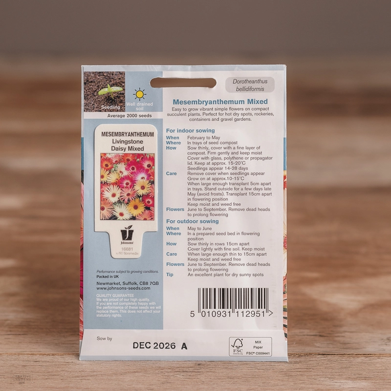 Are you looking for the product "Mesembryanthemum Livingstone Daisy Mix"? We offer Johnsons Seeds products in our garden centers in Donaghadee, Bushmills, Galgorm and Logwood. You can also order the product "Mesembryanthemum Livingstone Daisy Mix" online for £ 3.19 or check the products in Seeds & Bulbs. We look forward to seeing you soon!