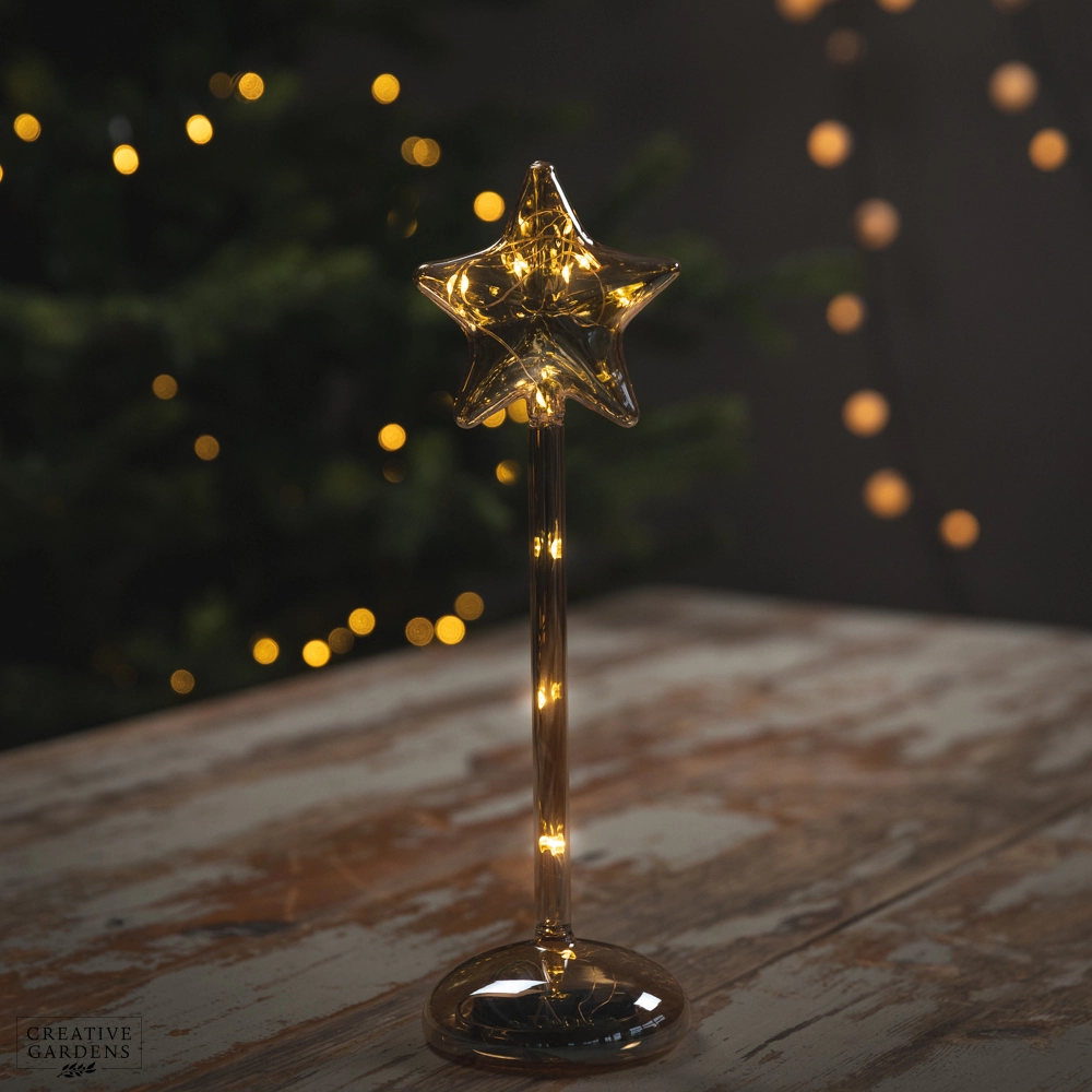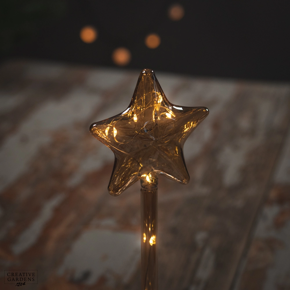 Amber Coloured Glass Star with Warm White Micro LED Lights