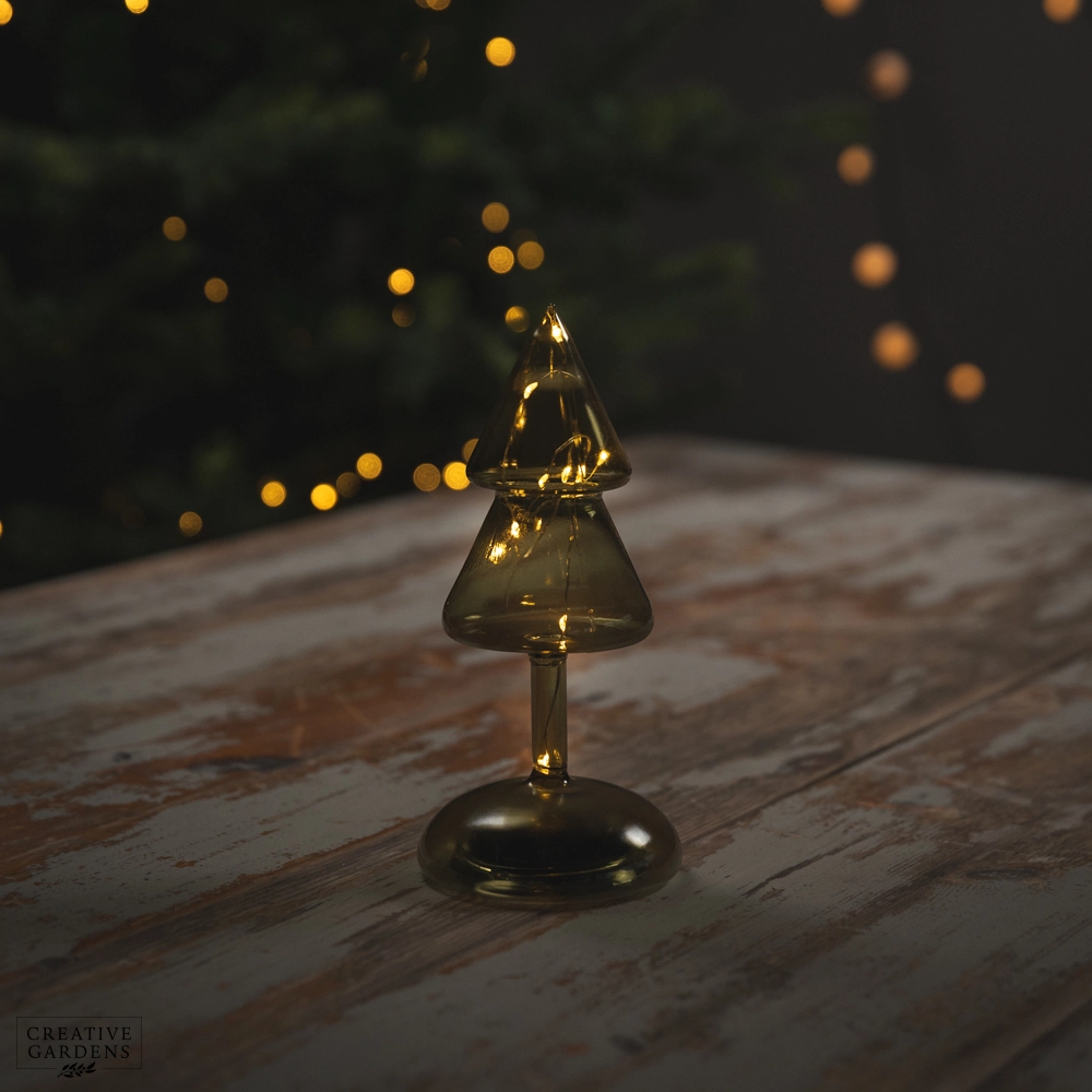 Amber Coloured Glass Tree with Warm White Micro LED Lights