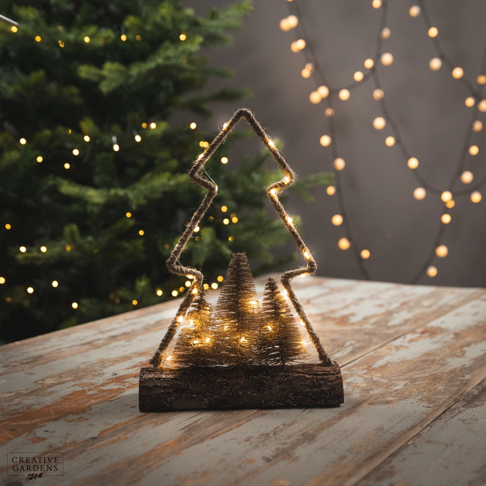 Bristle Trees on a log with Tree Frame and Warm White Micro LED Lights
