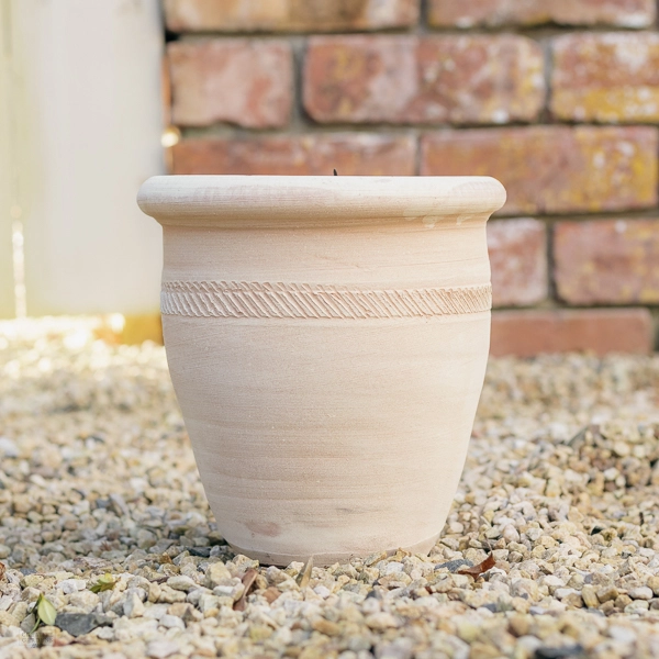 Please Note: These pots come in 3 assorted designs as pictured and we will choose a design to deliver based on our current stocks. Where 2 or more pots are ordered, we will do our best to deliver all of them in the same design. Terracotta is a natural product and some colour variation may occur between pots.