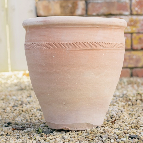Please Note: These pots come in 3 assorted designs as pictured and we will choose a design to deliver based on our current stocks. Where 2 or more pots are ordered, we will do our best to deliver all of them in the same design. Terracotta is a natural product and some colour variation may occur between pots.