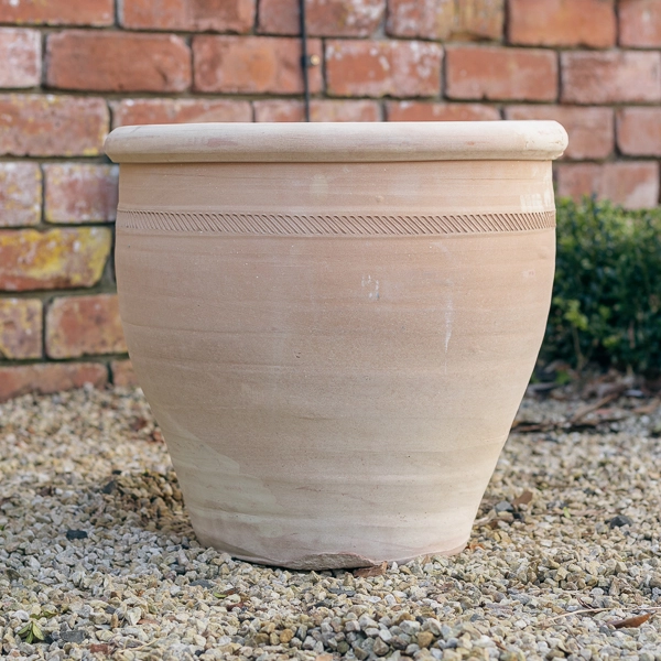 Please Note: These pots come in 3 assorted designs as pictured and we will choose a design to deliver based on our current stocks. Where 2 or more pots are ordered, we will do our best to deliver all of them in the same design. Terracotta is a natural product and some colour variation may occur between pots.