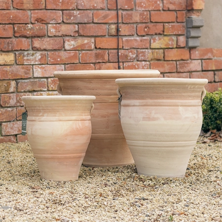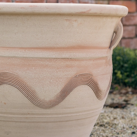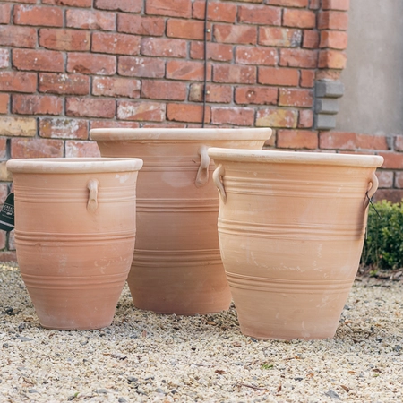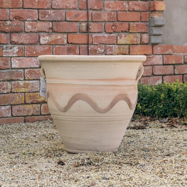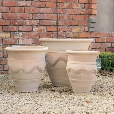 Please Note: These pots come in 3 assorted designs as pictured and we will choose a design to deliver based on our current stocks. Where 2 or more pots are ordered, we will do our best to deliver all of them in the same design. Terracotta is a natural product and some colour variation may occur between pots.
