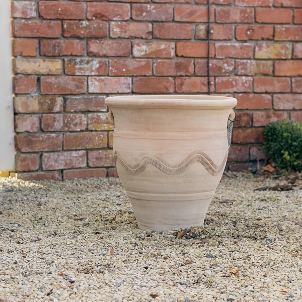 Please Note: These pots come in 3 assorted designs as pictured and we will choose a design to deliver based on our current stocks. Where 2 or more pots are ordered, we will do our best to deliver all of them in the same design. Terracotta is a natural product and some colour variation may occur between pots.