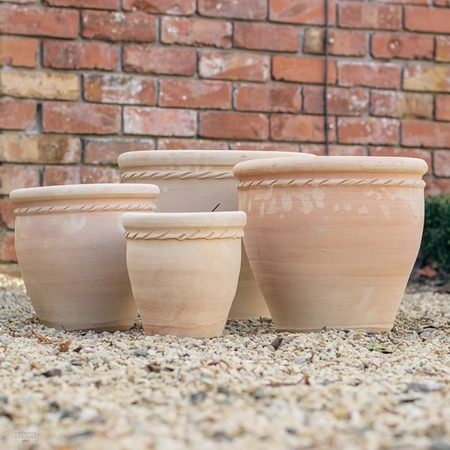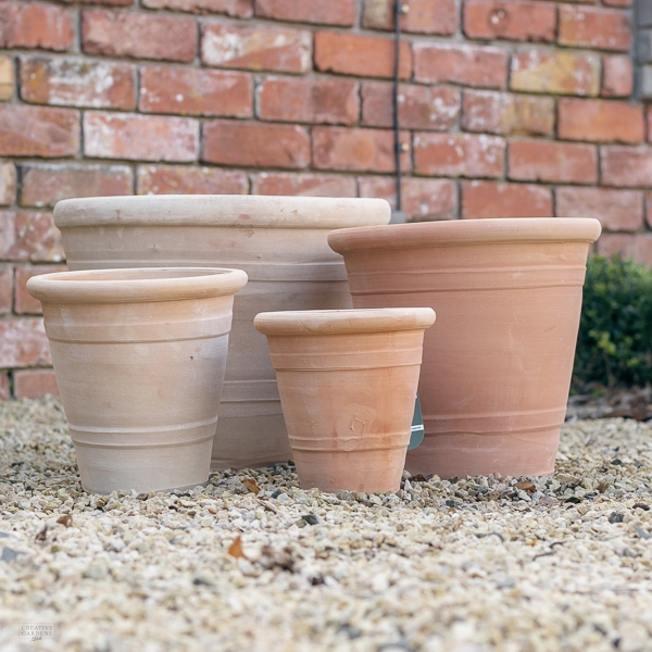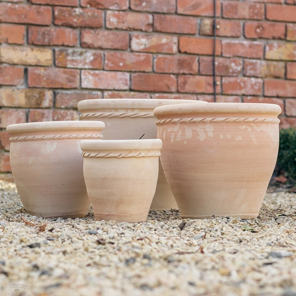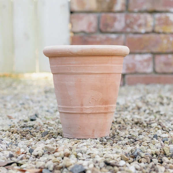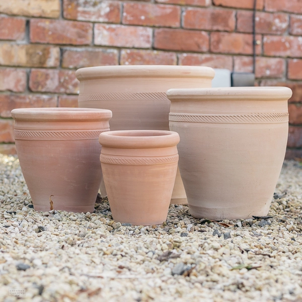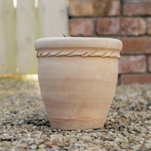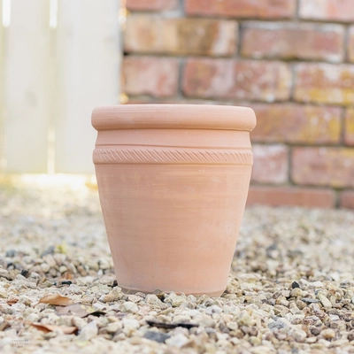 Please Note: These pots come in 3 assorted designs as pictured and we will choose a design to deliver based on our current stocks. Where 2 or more pots are ordered, we will do our best to deliver all of them in the same design. Terracotta is a natural product and some colour variation may occur between pots.