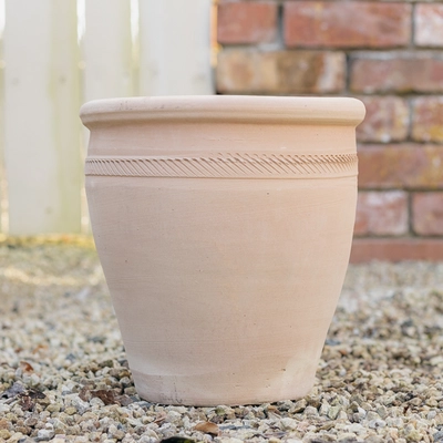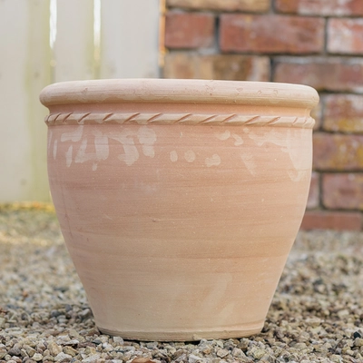 Please Note: These pots come in 3 assorted designs as pictured and we will choose a design to deliver based on our current stocks. Where 2 or more pots are ordered, we will do our best to deliver all of them in the same design. Terracotta is a natural product and some colour variation may occur between pots.