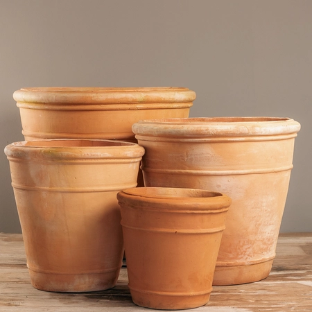 Warm and rustic hand thrown terracotta pot in classic designs, tough enough to withstand the test of time. Produced in traditional wood fired kilns by generations of skilled craftsman, each pot is individually crafted to create high quality planters.