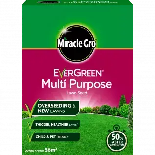 Miracle-Gro® EverGreen® Multi Purpose Lawn Seed is a quality sports-grade grass seed specially formulated for hard-wearing lawns, ideal for over-seeding, creating a new lawn or to fill bare patches in the lawn.