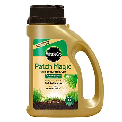 Grow lush green grass in virtually every condition. Miracle-Gro Patch Magic Grass Seed, Feed & Coir contains a special binder which helps keep seed from washing away. It grows 2× thicker than ordinary grass seed and first shoots can be seen within just 4 days. Surrounding the seeds is a moist protective layer that expands to six times its size, so they stay rooted in place with all the nutrients they need to grow. Exclusive controlled-release technology feeds seedlings to jumpstart growth.