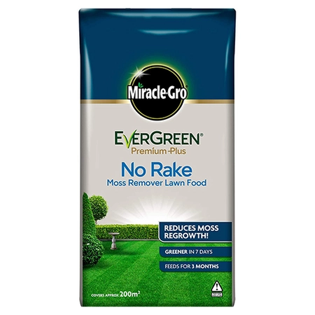 Helps develop a superior lawn by removing moss, without the need to rake it out. Miracle-Gro EverGreen Premium Plus No Rake Moss Remover Lawn Food is a premium lawn treatment that has been specially formulated to have an indirect action against moss. The naturally occurring bacteria ‘eats’ the dead moss - so you will not need to rake it out. It also contains a slow-release fertiliser that feeds your lawn for up to 3 months without surge growth and helps prevent moss from redeveloping. A repeated application after 3 months will help create a thick and healthy lawn.